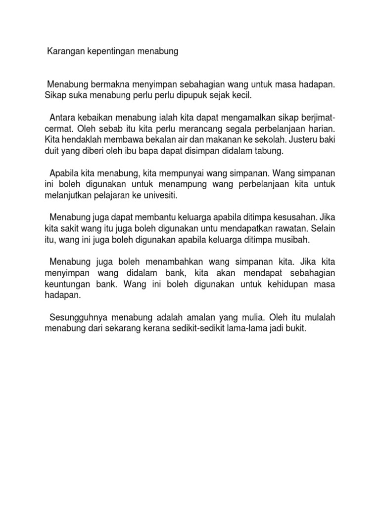 Karangan Kepentingan Menabung Pdf